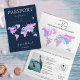 Modern and unique wedding Invitation Wedding Destination, like passport with holographic world map
