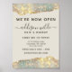 Holographic Glam Glitter Salon Business Opening Poster. This design features a classy signature script style font set against a beautiful modern iridescent sparkle background. Perfect for a beauty salon, hair stylist, makeup artist, or cosmetologist.