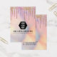 This girly and glamourous necklace logo display card is the perfect way to stylise your packaging and add your own personal flair and personality. It depicts chic, pretty, unique, and luxurious faux printed sparkly rainbow colour glitter drips on top of a holographic iridescent foil background. The colour scheme includes pink, peach, blue, purple, gold, and coral. On the back, it includes contact information that can be changed completely or personalised to your details. It's a professional, elegant, and stylish way to display your product with pride. (earring holes are printed markers only, puncturing must be completed by the customer)