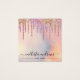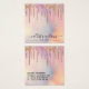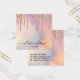 This girly and glamourous ring display card is the perfect way to stylise your packaging and add your own personal flair and personality. It depicts chic, pretty, unique, and luxurious faux printed sparkly rainbow colour glitter drips on top of a holographic iridescent foil background. The typography is an elegant cursive script with a modern serif font to match. The colour scheme includes pink, peach, blue, purple, gold, and coral. On the back, it includes contact information that can be changed completely or personalised to your details. It's a professional, elegant, and stylish way to display your product with pride. (ring lines are printed markers only, cutting must be completed by the customer)