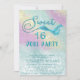 Adorable glittery mermaid tail holographic Sweet 16 invitation.