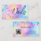 Holographic Glitter & Polish Splash and Drips Nails Thechnician Custom QR Code Colourful Business Card