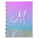 Holographic Glitter Purple Blue Ombre Monogram Notebook