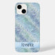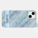A phone case with a faux holographic pastel blue pattern.