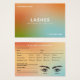 Customise with your service details, contact information, and social media. Ideal for eyelash businesses, this card allows you to create a personalised lash map and add important notes. Keep a detailed and organised record of each client for a tailored and efficient service