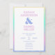 Holographic Ombre gradient in neon colours pink purple blue yellow with monogram modern trendy personalised wedding invitation. This card is easily editable. If you need help with the customisation of this card or you need more matching products for this collection kindly message me via Zazzle.