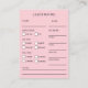 Holographic Lash Client Record Form Business Card