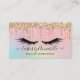 Makeup Lashes Gold Unicorn Glitter Drip Holographic Business Cards with Glitz and Glam Sparkle