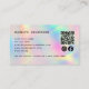 Customise this "Holographic Modern Unique Professional QR code Business Card", featuring a light pastel colour holographic background. Personalise with your name monogram, full name in a beautiful modern script, professional title, contact information, social media username, and address. QR code and social media icons (Instagram and Facebook) are thoughtfully integrated, making it easy for clients and colleagues to connect with you digitally. Perfect for professionals who value style and functionality in their branding. Please get in touch with the store designer for further customisation if needed.