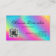 Elegant Holographic Neon Rainbow Colours Makeup Artist and Aesthetician Salon and Skincare Custom QR Code Business Card