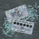 The holographic details are simulated in the artwork. There will be no actual holographic shine effects when printed.