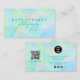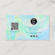 Holographic Opal Stone Marble Script QR Code Blue Business Card