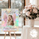 Celebrate the life of your loved one with this stunning funeral welcome sign. Featuring holographic pink angel wings with golden accents against a radiant background, perfect for a unique and heartfelt memorial tribute.