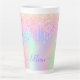 A trendy holographic background with unicorn and rainbow pastel colours in pink, purple, mint green. Decorated with drips in pink and purple. Personalise and add a name, written with a modern hand lettered style script with swashes. Purple coloured letters. To keep the swashes only delete the sample name, leave the spaces or emoji's in front and after the name. A bit of everyday glam to brighten up your day!