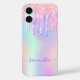 A trendy holographic background with unicorn and rainbow pastel colours in pink, purple, mint green. Decorated with drips in pink and purple. Personalise and add a name, written with a modern hand lettered style script with swashes.  Purple coloured letters. To keep the swashes only delete the sample name, leave the spaces or emoji's in front and after the name.
