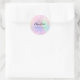 Holographic pink purple monogram name classic round sticker