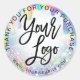 Holographic rainbow add your logo pink thank you classic round sticker