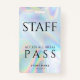 Custom Holographic Staff All Access Pass Event Badge that you can easily customise. Perfect for any event and corporate events. Completely repurpose this design template for other special occasions in your life by clicking the "Edit using Design Tool" nested under the "Personalise" button to change the background colour, fonts, and layout