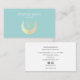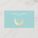 Elegant business cards for yoga studio, massage studios, massage therapy, meditation teacher, natural health counsellor, spas or wellness professionals feature a gold holographic illustration of a third eye over crescent moon on a impressive teal blue background.