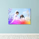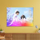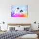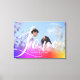 create your own couple canvas print with best picture of you overlayed with pink and purple watercolor abstract holography painting with name, year below and beautiful "love" white script typography, to keep your awesome wedding, engagement or romantic memories and bring them to life.