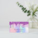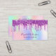 A trendy holographic background in pink, purple, mint green. Decorated with drips in rose gold, pink and purple. Personalise and add your name, title, phone number, mail and website adsress. Purple letters. Without drips on the back.
