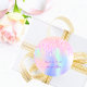A trendy holographic background with unicorn colors and rainbow colors in pink, purple, rose gold, mint green. Decorated with faux glitter drips in rose gold, pink and purple. The text: Thank You. Personalize and add your name, written with a modern hand lettered style script with swashes. Purple letters. o keep the swashes only delete the sample name, leave the spaces or emoji's in front and after the name. For birthday party favors and thank you notes.