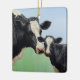 A mother black Holstein cow lovingly nuzzles her precious baby calf. Realistic artwork created from an original oil painting by equine and wildlife artist Crista S. Forest.