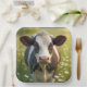 Holstein Cow In Green Pasture With Daisies Paper Plate