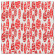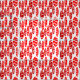 This fabric has a repeating pattern of ovals in red and brick with scattered white ovals.