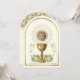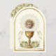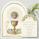 Celebrating the Sacrament of First Holy Communion is a wondrous occasion. This traditional Catholic custom-designed vintage First Holy Communion Invitation with a gold chalice and the Holy Eucharist with white and gold floral accents including the Child Jesus in the Eucharist is sure to express the beauty and solemnity of this special day. All text and fonts can be easily modified.