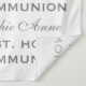 Charming and elegant design featuring handwriting script step and repeat, faux silver cross. Use Personalise tool to add your info. For matching items, please, visit my Holy Communion Collection.