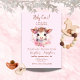 Celebrate in style with this charming cow-themed baby shower invitation featuring a watercolor baby cow surrounded by soft pink florals. The pastel colour palette, elegant fonts, and rustic country feel make this design perfect for a little girl on the way.