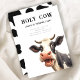 Holy cow childrens birthday invitation featuring a shocked looking cow , cute minimal design with cow print on the back to complete the look,