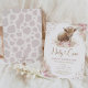 This feminine birthday invitation features an adorable baby highland cow surrounded by dusty pink flowers, pampas grass and muted bohemian elements.