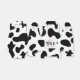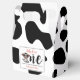 Holy Cow one First Birthday cowprint black and white pattern with a name to customise, thank you for celebrating with us frase, featuring a digitaly painted cute cow combining coral pink, black and white colours coordinated with the rest of the birthday suite. Designed and painted by @rodicadraws.