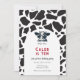 Fun birthday party invitation features a cow pattern with a cool cow illustration. Great for all ages! Personalise with your information or click "Click to customise further" to edit font styles, size and colours.