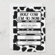 Yeehaw! Invite guests to a milestone celebration with this whimsical cow-print birthday invitation. The design features a black and white cowhide pattern with “Holy Cow, I’m 40 Now” in a bold western-style font at the top. Party details are displayed in separate editable text boxes for easy personalization. The back repeats the fun cow pattern, making it perfect for cowgirls, cowboys, or anyone turning a fabulous forty—or any other age!