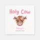 Cute cow theme girl's birthday party napkin featuring watercolor illustration of highland cow with pink flowers. The text says "holy cow."