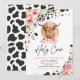 Holy Cow I'm One Pink Floral Farm Birthday Party Invitation