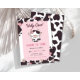 Get ready to celebrate with our Cow Birthday Invitation! Showcasing a sweet baby cow on a pink background, this invitation is accented with cow spots and daisies. Customisable text allows you to personalise all the party details, making it the perfect choice for your little one's special day.
