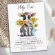 Introducing our adorable "Holy Cow" baby shower invitations! These invitations are perfect for a gender-neutral baby shower, as they feature a cute calf and sunflowers in a simple and modern watercolor design. The black, white, and yellow colour scheme adds a touch of elegance to the playful farm animal theme.