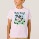The t-shirt feels and looks great quality, a good thick cotton. It will be a little big for my son, but that means he will be able to wear it and not out grow it too soon. The print was as described on the order when personalised. True size, shape and colour T-shirt- thanks.