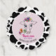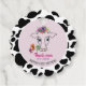 Cute, funny pink black and white holy cow with floral crown 1st birthday thank you favour tag. Thank moo!