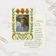 Catholic funeral prayer card with Three Hearts of Jesus, Mary, and Joseph above a photo frame, adorned with marigolds, golden crosses, and the Holy Spirit as a Dove below. A reverent way to commemorate the soul of a loved one with traditional Catholic imagery. Customisable with the name, dates, and prayer of your choice. Ideal for Marian feast days, spiritual comfort, and eternal remembrance.