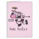 A black and white stick figure cow with an angel halo and angel wings and text that reads "Holy Heifer" on cute stick figure cow design T-shirts, sweatshirts, hoodies, tank tops, cards, postage, mugs, mousepads, keychains, magnets, and other cow design apparel and gifts.