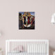 Reproduction of a fine art piece entitled "Holy Trinity by Botticelli. Scene depicting Jesus Christ on the cross while God and the Holy Ghost look on. Painted circa 1492