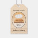 A graphic illustration of baked bread on a gift tag. The tag has text templates for your personalisation. Original artwork: Copyright Charmaine Paulson