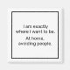 This magnet is a vibe. Use it to declare your preference for peaceful solitude. Text says, "I am exactly where I want to be. At home, avoiding people."