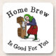 A fun design for home beer brewers with a colourful mediaeval tapster pouring himself a pitcher of ale from his two kegs framed by the text "Home Brew Is Good For Your".