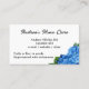 Home care or health care business cards with blue hydrangeas. Simple cards have business or name at top with centre printed text for contact information with website, e-mail or whatever. In the lower left corner more information can be included in black script to match the title font. Reverse design is thin, black stripes. This design may not work on all sizes. It will print as you see it.
